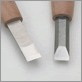 彫刻刀の中でもよく使う刀です。荒彫りの段階から仕上げ彫りまで、様々な用途で使われています。刃物全体を使って広い面を大きく削り取る場合や、鋭い刃先を利用して細かい作業に重宝します。また、普通の印刀だけでなく、印刀左もあるのも特徴です。刀身が細いほどより細かい作業ができます。