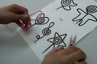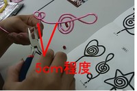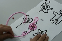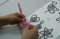 (2)親指と人差し指で輪をはさんで、まわしながら小さなうず巻きをつくる。