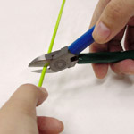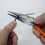 ・刃を内側にしてラジオペンチで刃の真ん中で切ります。