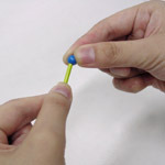 (4)思いどおりの形にワイヤーを曲げたらスタンド部分を作成し、キャップを付けます。