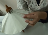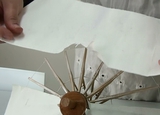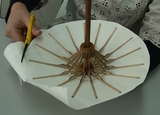 (3)タイ和紙を骨に貼り付けます(まずは半分)。