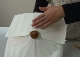 最後に骨筋に沿って紙を折り込んでいき、完全にたためたら接着剤が乾くまで放置します。