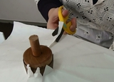 乾いたら一度広げて調子を確認し、OKなら傘トップ部分に(7)でカットした紙を貼り付けます。