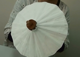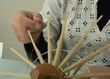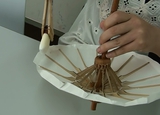 (1)傘を丁寧に開いて、骨に糸を結んでいきます。