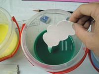 (3)色水に浸けて、膨らまします。