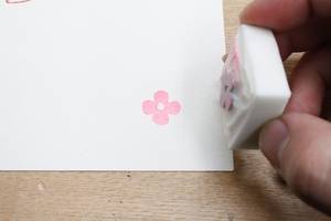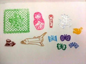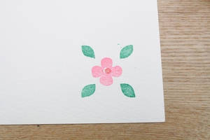 色を分けてつけたり、細かい版のときはインクパッドを版にポンポンとつけるほうがキレイにスタンプできるようです。