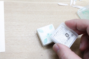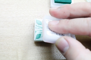 彫りあがったら、インクパッド(スタンプパッド)で色をつけます。