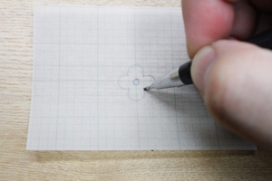 デザインを描き終えたら、トレーシングペーパーを版の上にかぶせます。