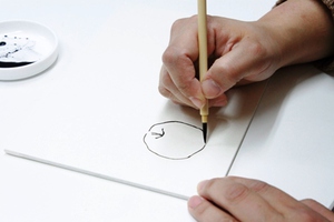 骨描き墨汁は、水で2倍~3倍に希釈して使用します。
