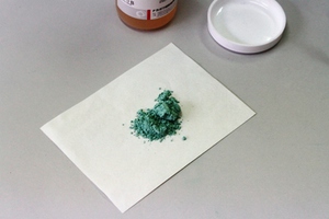 b.紙の上に岩絵具を少量のせます。