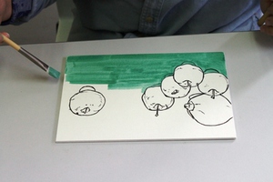 (1)モチーフをよく観察しながら、鉛筆でスケッチします。