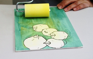 c.背景に調子を付けたい場合はスポンジローラーなどを使っても楽しめます。
