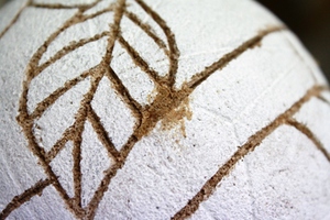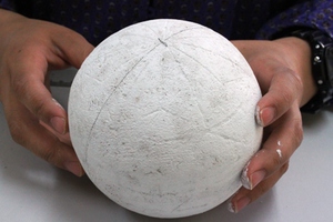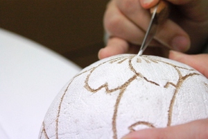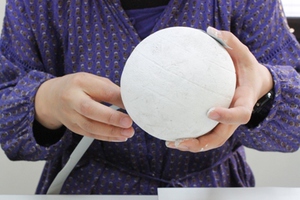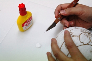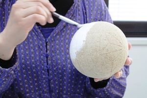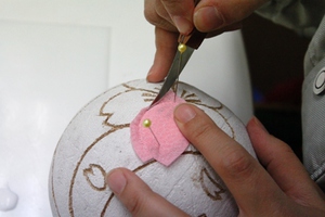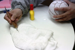 3.鞠の全体に胡粉を塗ります。