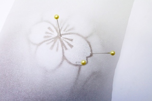 薄めのトレーシングペーパーを型紙を作りたい箇所にまち針で止めて軽く木目込みます。