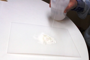 a.下敷きなど樹脂板を用意します。
