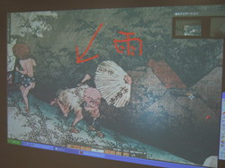 ↓電子黒板のペン機能を使用して、作品に書き込むとこで生徒の視線を作品の1部分に向けさせる。