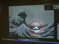 従来のスライドと同様に作品を映写し、解説を先生が読むという「ながめる鑑賞」もできますが、作品を拡大したりしながら、細かく見せることで「見る鑑賞」への発展がこの電子スライドでは可能です。