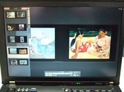 従来のスライドと同様に作品を映写し、解説を先生が読むという「ながめる鑑賞」もできますが、作品を拡大したりしながら、細かく見せることで「見る鑑賞」への発展がこの電子スライドでは可能です。