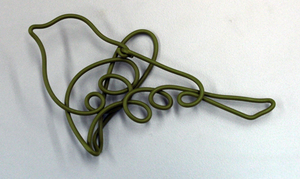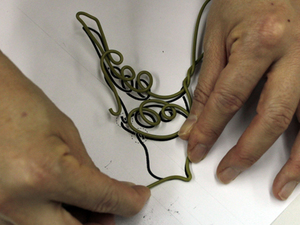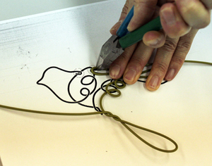 8.次に左端です。左端も同様に型紙に沿わせて曲げていきます。くちばしの部分は先ほどと同様、ペンチを使って曲げると美しく曲がります。