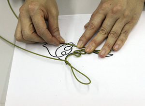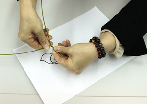 4.ねじり部分を型紙に合わせたら、型紙の向かって右方から型紙をなぞるように作ります。