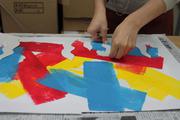 【ポイント】カラフルで楽しい版画を作るために、シール版は何回かに分けて貼ります。今回は5色の版画にしたいので、シール台紙を5回に分けて貼ります。