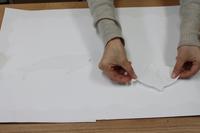 (2)白く抜きたいデザインをシール台紙で版を作り、画用紙に貼ります。