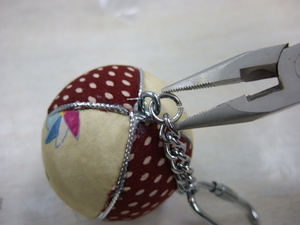 ペンチを使って、ヒートンとキーホルダー金具をつなぎます。