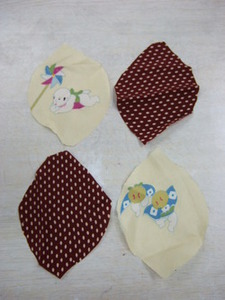 布のパーツを4枚準備します。色や柄の組み合わせを工夫してみてください。