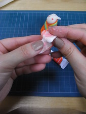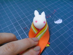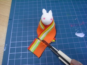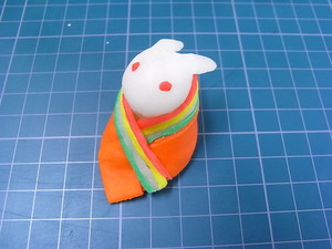(2)でつくった十二単を、(3)でつくったうさぎにくるりと巻きつけます。