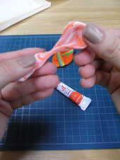 くるりと巻いたら、合わせのところを耐水性ボンドでくっつけます。