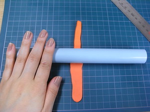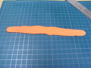 のし棒で、ひもを厚さ1mmくらい薄くのばします。