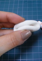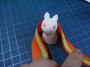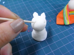 胴体に首をのせて、最後に耳をくっつけます。へらや指を使って、パーツとパーツの継ぎ目をならします。