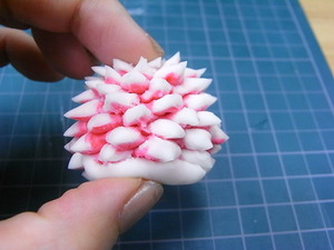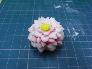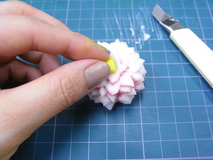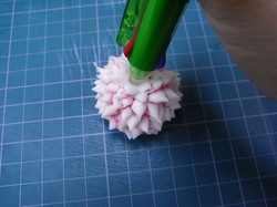 菊のあたまに、ペンのノック部分などでくぼみをつくります。