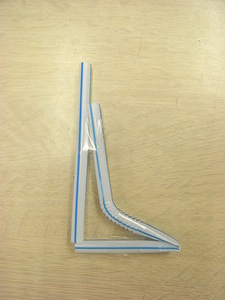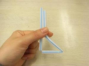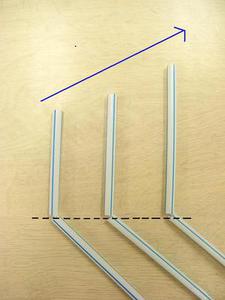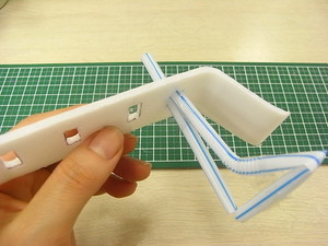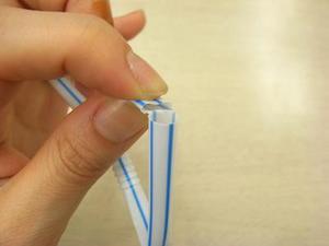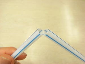 (2)ストローを折る角度を決めて、セロテープでとめます。