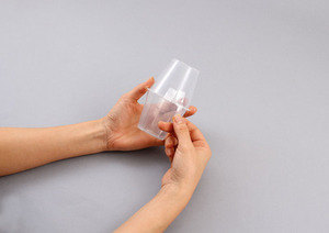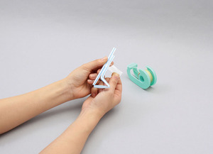 カップの口と口をあわせて、どこか1点をセロテープで留めます。