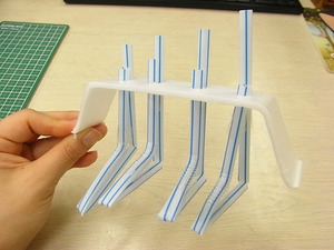 今回は4本連結!!スチロールトレーの大きさと、ストローの本数を考えると、4~5本が限界のようです。