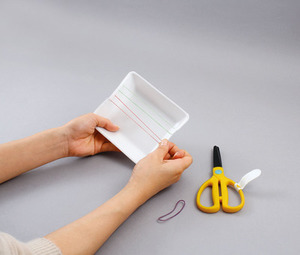 写真を参考にしながら、各側面に切り込みを入れると、トレー本体にとりつけやすくなります。