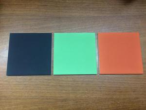 焼成前のタイルです。約800℃で焼成すると、釉薬は鮮やかに発色しますが、焼成前は少し白みがかった色です。