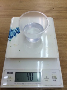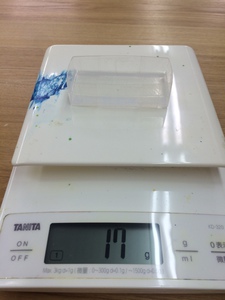 混合物が50gできる計算です。これで、型枠3個分(出来上がる硬化物の厚みは約7mm)できます。