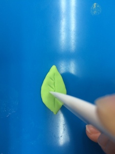 葉っぱの形をつくったら、彫塑べらで葉脈のすじを入れます。