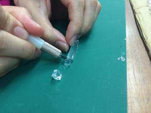 デザインナイフで、約5mm角に切っていきます。