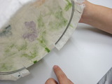 ★下の写真は、ボンド液をたっぷり塗りすぎで、仕上げ段階で色雲龍紙の色が滲んでしまった例。液がたれないよう適度な量を刷毛で塗りましょう。