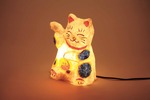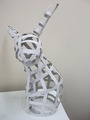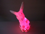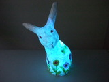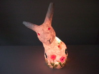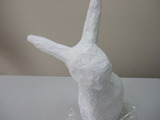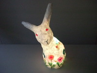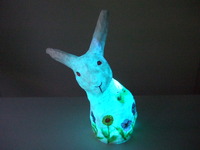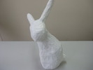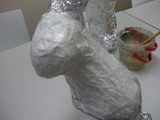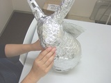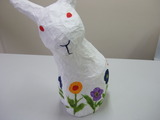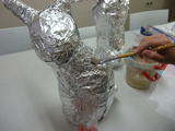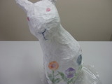 1層目の雲龍紙の上からボンド液で2層目の雲龍紙を貼りつけていきます。右写真は2層目を貼り終えてさらに厚くなったうさぎ。