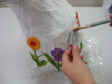 (8)ボンド液を塗り、さらに白雲龍紙を貼り付けます。