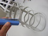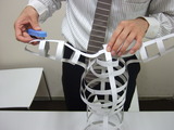 まずは胴体を作りましょう。白ボール紙を輪にしてホッチキスで留めます。胴体の形に合わせて輪を何個か作り、その輪を基点にして、白ボール紙を格子状に組んでいきます。白ボール紙が重なる部分をホッチキスで留めて固定させましょう。