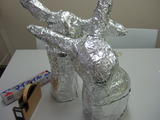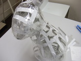 (2)白ボール紙を組み合わせて、張り子の心材をつくる。