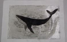 メディウムはがし刷り版画は、アクリル画に使われるゲル(ジェル)メディウムを利用して版画を刷る新しい凹版画の技法です。従来のプレス機の加圧によるインクの刷り取りに代わり、メディウムが接着剤となってインクに紙をはがし取るという新発想の版画。