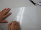 (1)下絵を描き、ポリシートに写す。