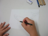 まず、版画にしたい下絵を描きます。描いた下絵のままの向きで彫った場合、刷り上った絵柄は左右が逆になります。描いた通りの向きに彫りたい場合は下絵をあらかじめ逆に反転しておきます。